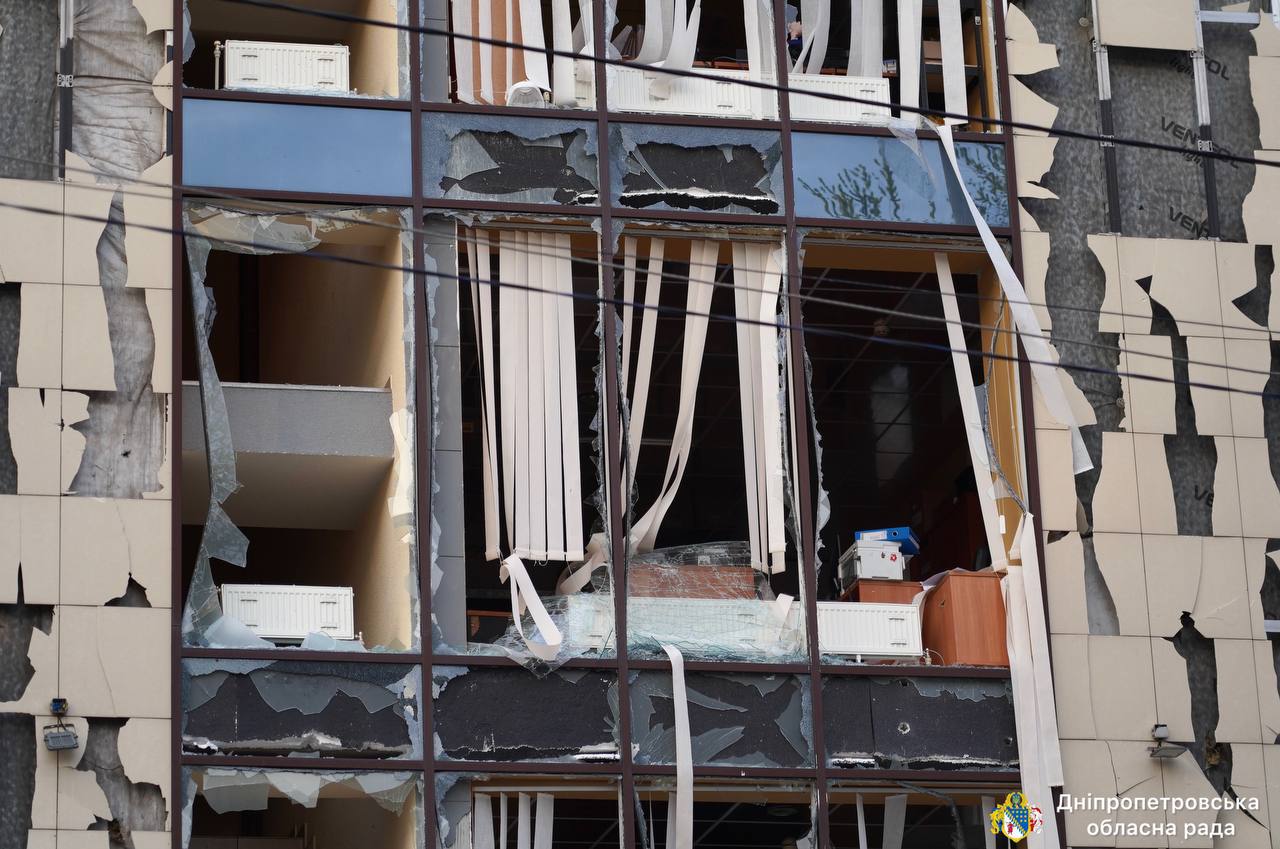 The massive attack in Dnipro left serious damage. Office and administrative buildings, residential buildings and a local business have been damaged. Rescuers are working at the scene and are clearing the rubble.